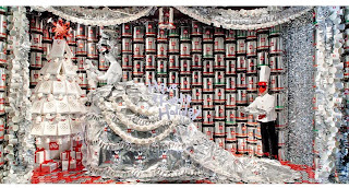 Cei de la C&A au propus pentru aceste sărbători doua teme : cea casual pe paleta de culori roşu-verde şi cea glam-elegantă pe nuanţe de mov . Am realizat acestă vitrină din 100% imaginaţie proprie deoarece nu am primit materialele necesare pentru realizarea ei comform şablonului . Asta e ceea ce a ieşit , şi sunt foarte mândru deoarece aceste vitrine au fost postate pe 2 din cele mai importante site-uri de profil din lume .