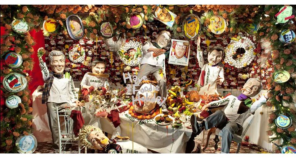 Simon Doonan a propus pentru Barneys tema alimentelor pentru vitrina de sărbători şi mesajul a fost: “HAVE A FOODIE HOLIDAY!”
