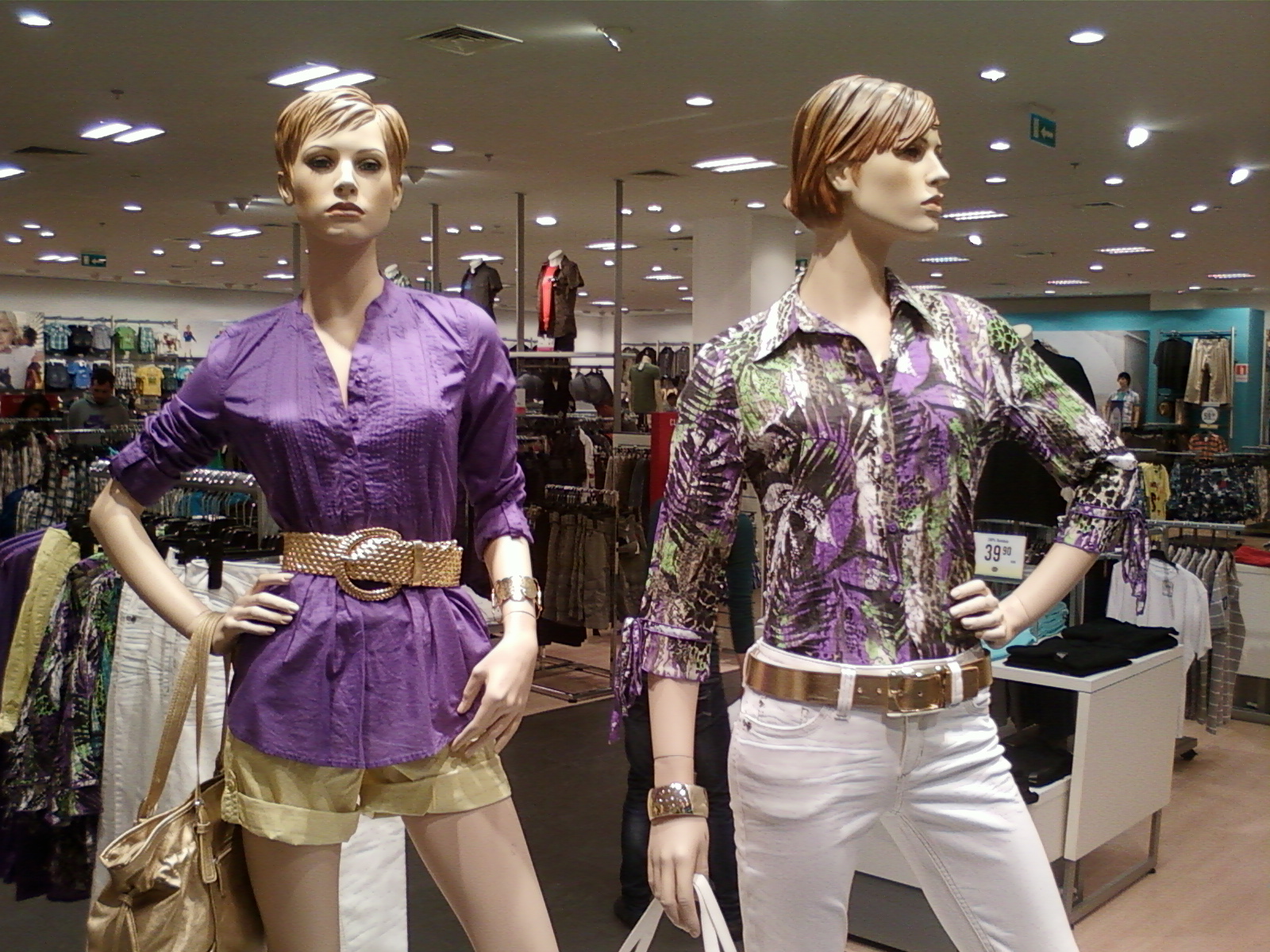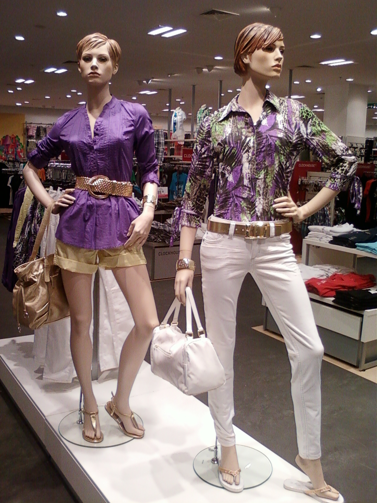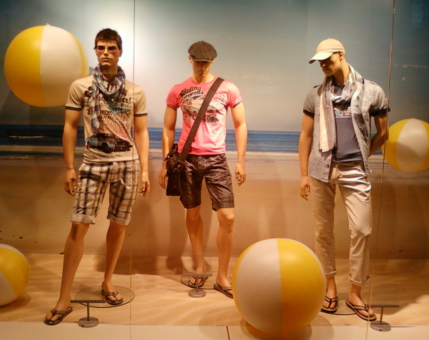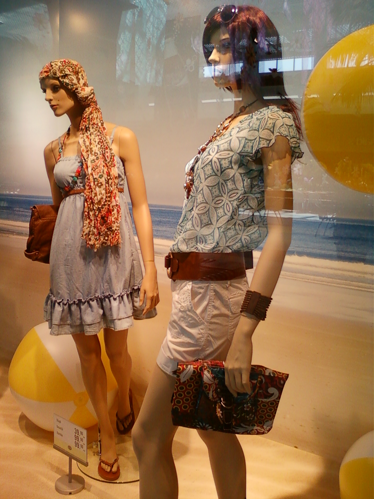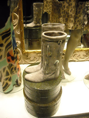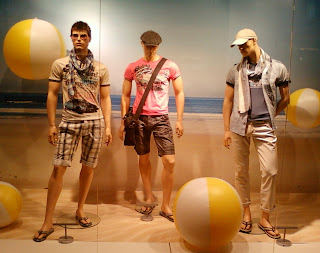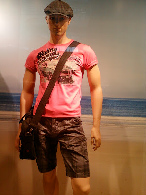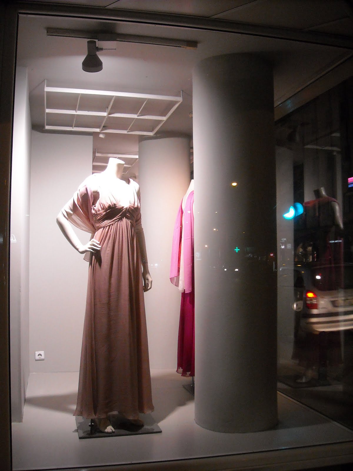 Vitrinele : deschise , cu manechini “headless” , iluminate corect . Recuzita şi accesoriile de vitrină (vezi scaunul şi rama) cataloghează clar clientela şi accesibilitatea acestui “concept store” .