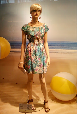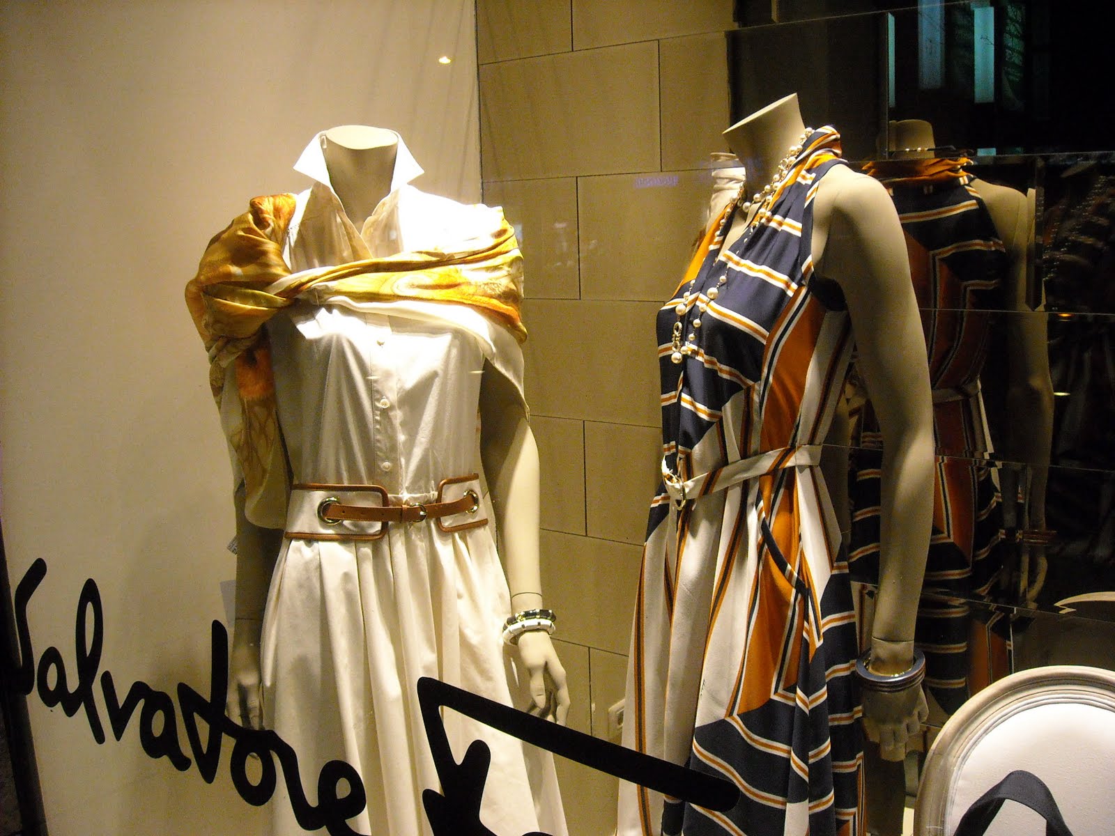 Despre vitrinele magazinului-franciză de pe Calea Victoriei pot spune că sunt luminate corect , sunt expresive pentru brand şi susţin campania acestui sezon . Manechini “headless” şi … puţină recuzită de vitrină .