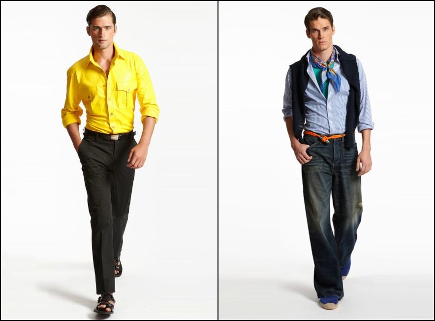 Ralph Lauren- o colecţie specifică label-ului înfiinţat în 1967: croieli precise, costume clasice, accesorizări perfecte. Acest sezon Ralph Lauren a adus şi o doză de neprevăzut în colecţia sa: cămaşa galben-neon, jeanşii evazaţi şi blazerul purtat la chinos scurţi.