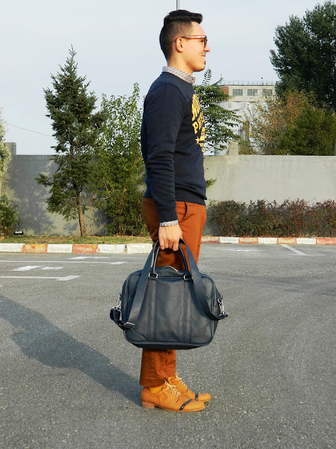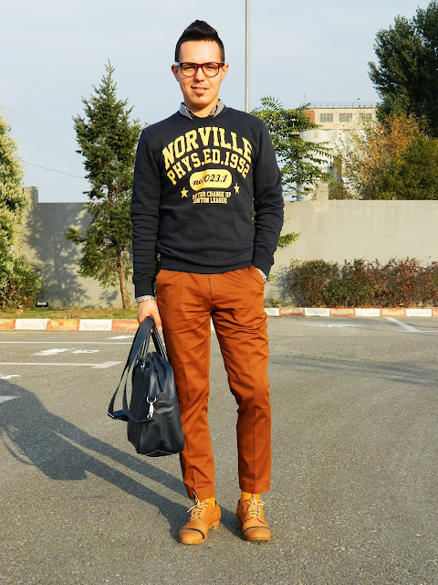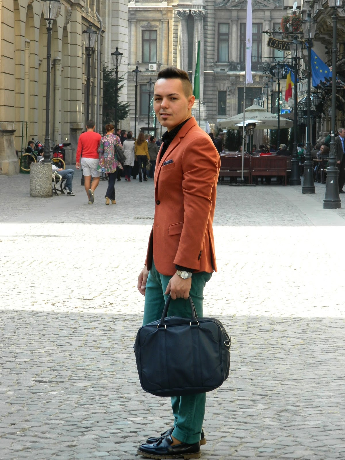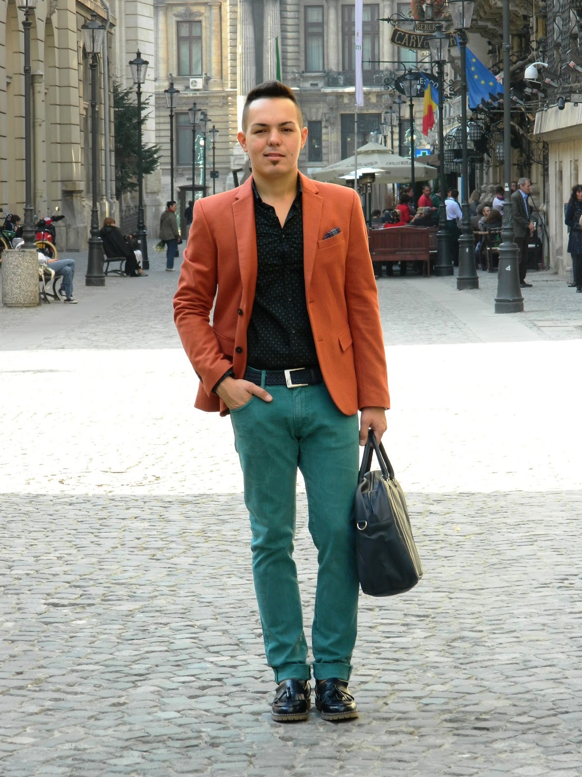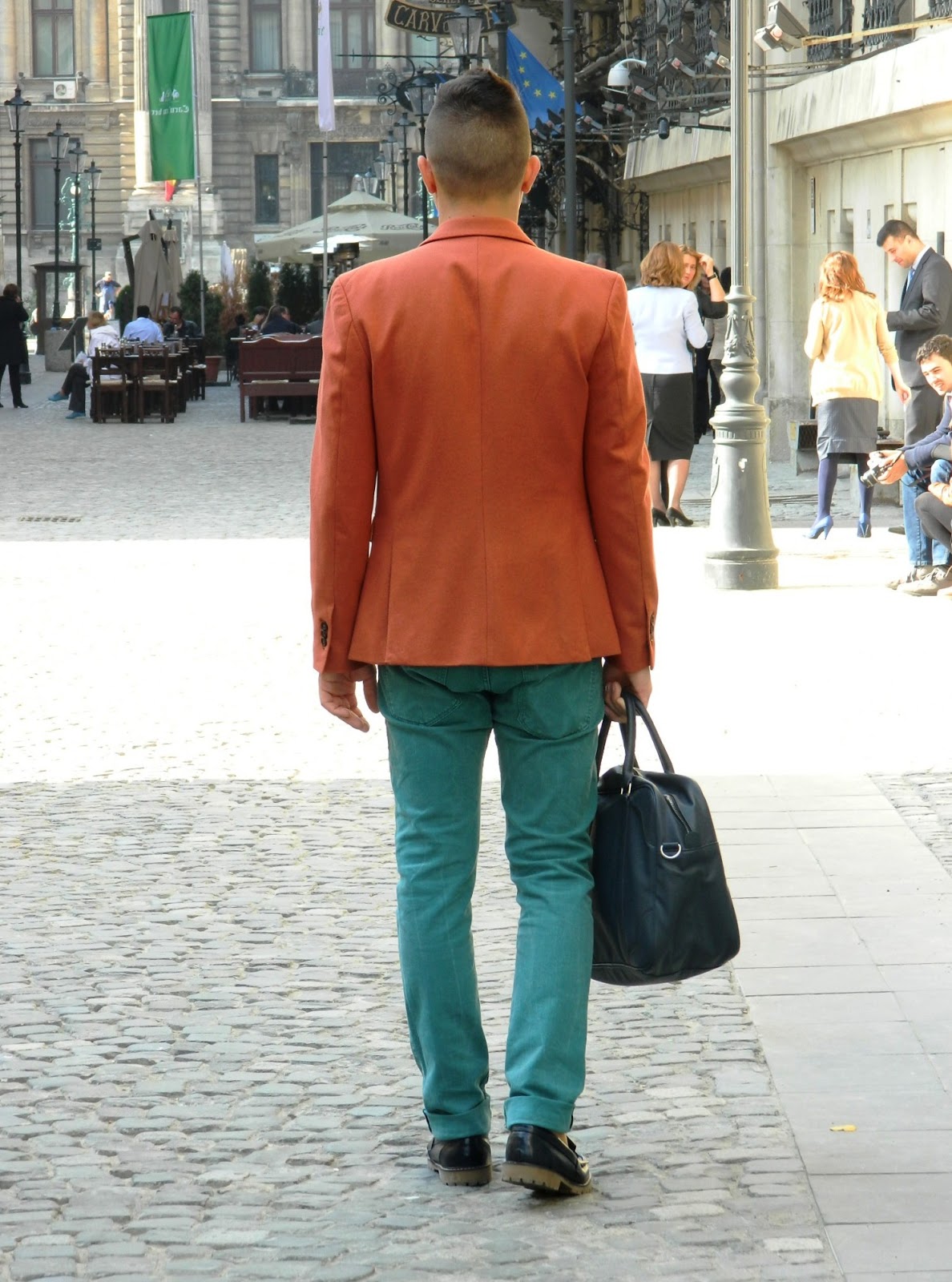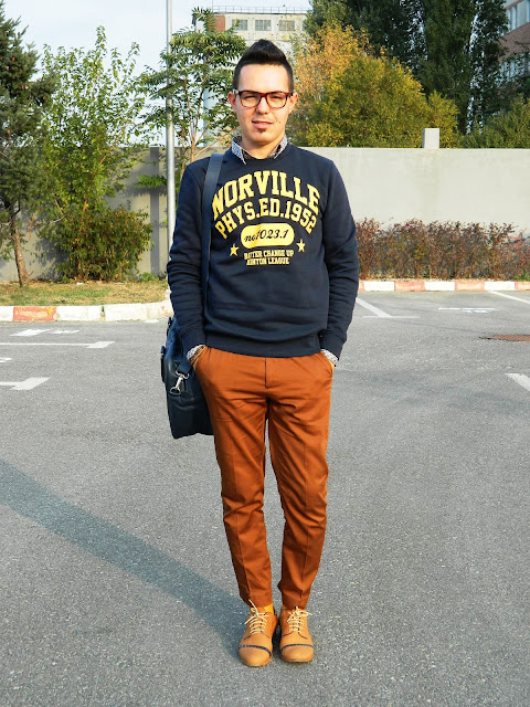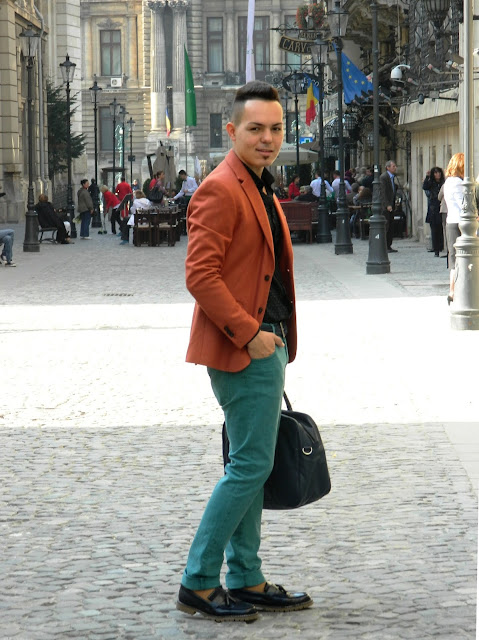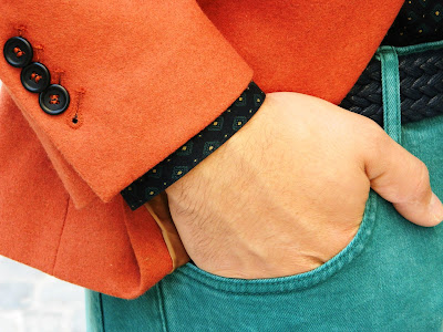 E cu siguranţă sacoul meu favorit in această toamnă. Un portocaliu plăcut, de o lână nu foarte ţepoasă, nici prea gros, nici prea subţire… numa’ bun pentru vreme până-n 0 grade. Să nu mai spun că are butonierele de la mâneci funcţionale (acest aspect descria până nu demult doar sacourile făcute made-to-measure).