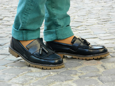 Aaa… Pantofii sunt şi ei noi. Mi-a plăcut ideea de mix între loafers cu ciucurei şi talpa de bocanc- foarte edgy.