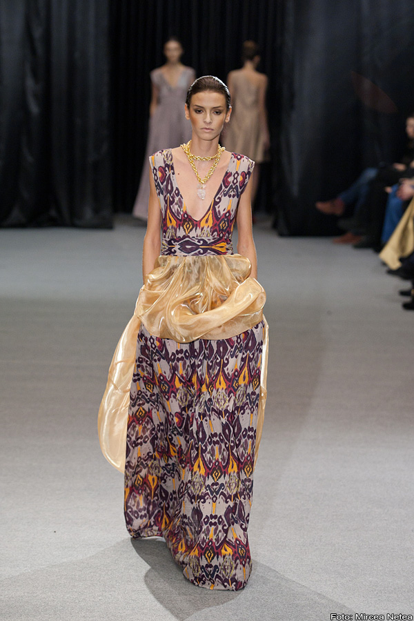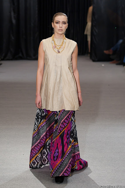 Simona Semen - colecția Simonei chiar mi-a insuflat un aer fresh, de primăvară… A fost cea care a arătat multe prin detalii. Accesoriiile creație proprie, pliurile contrastante și feminitatea evocată de fiecare dintre creațiile ei m-au făcut să-i ofer un loc pe podiumul meu (alături de Negulescu sisters). Ar putea deveni trendul sezonului în RO (și nu numai) print-ul etnic care a stat la baza colecției.
