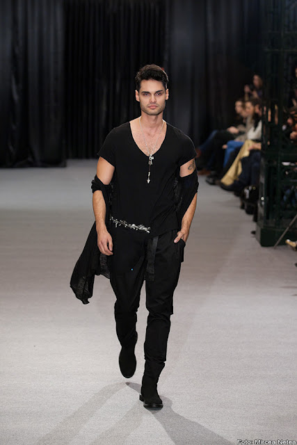 Ștefan Muscă - colecția lui Ștefan urmează clar linia cu care acesta s-a făcut consacrat: asimetrii, jocuri de volume, accente pe detalii trashy. Mi-a plăcut la nebunie sacoul gri cu un singur rever, l-aș purta fără nicio ezitare oricând și oriunde în exact forma-i originală.