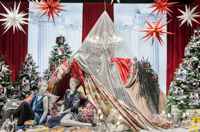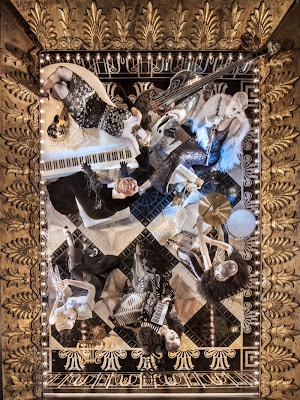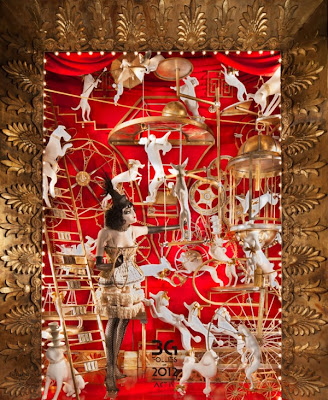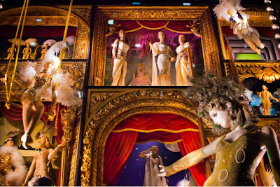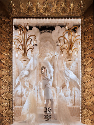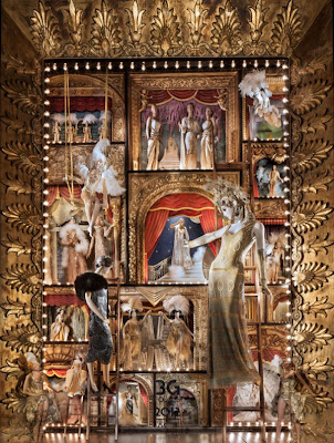 2. Bergdorf Goodman’s : inspiraţi de epoca glorioasă a anilor 20 - 30 în care jazz-ul se cânta cu o eleganţă nonşalantă în teatrele Art-Deco hollywoodiene, cei de la Bergdorf Goodman nu se dezmint nici în acest an şi recrează scene teatrale din celebrele musical-uri de Broadway - Ziegfeld Follies de la începutul de secol XX. Împărţite pe 5 acte, vitrinele debordează de sex-appeal, voie bună dar nu în ultimul rând - MODĂ. Cei de la Bergodorf Goodman au lucrat 12 luni pentru ceea ce se poate vedea mai jos: