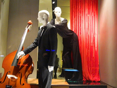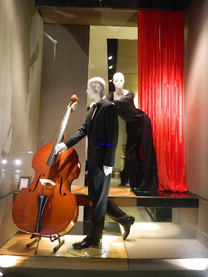 6. Mengotti (B) : se pare că cei de la Mengotti au fost ceva mai inspiraţi. Mai mult decât de sărbătoare, vitrinele multi-brandului de lux par a recrea povestea unei seri reuşite, la operă. Instrumente muzicale, cortină roşie, ţinute black-tie - toate ne duc cu gândul la o seară extrem de elegantă într-un cadru pe măsură.