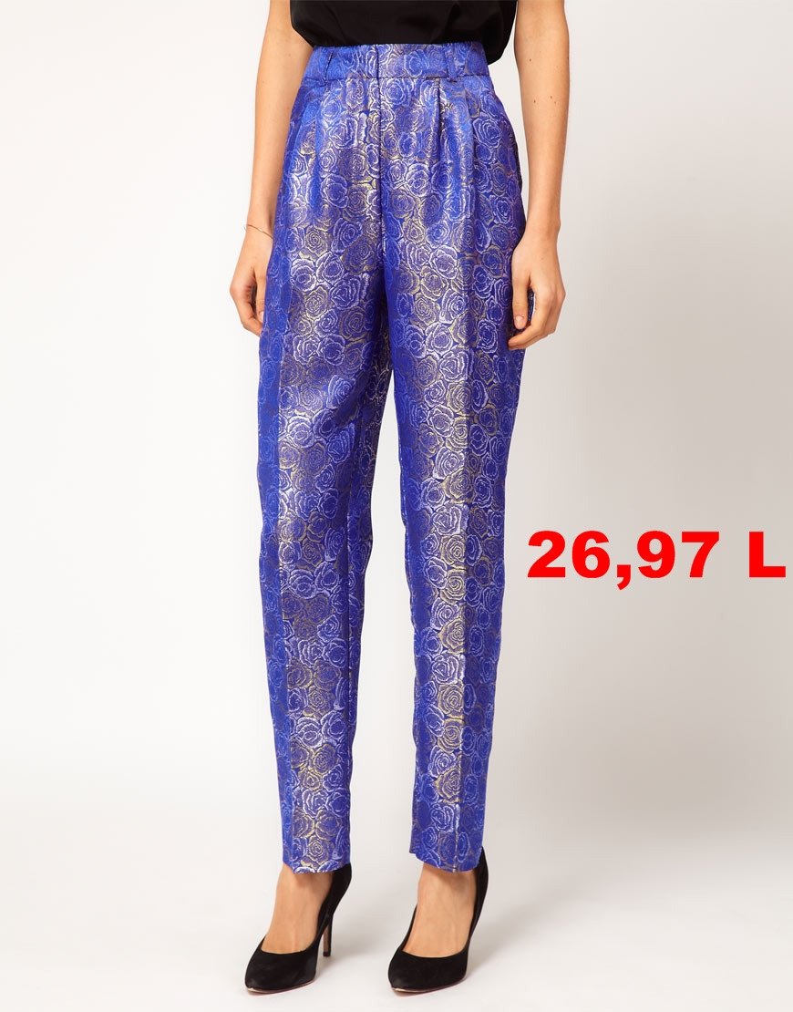 3. Pantaloni ASOS din brocart cu imprimeu floral multicolor - o piesă IT care te va scoate cu şiguranţă din anonimat. Preţ iniţial 53,94 lire.