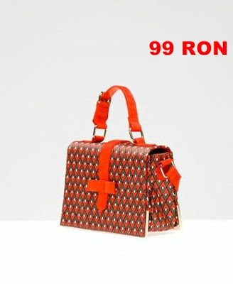 5. Geantă Stradivarius cu imprimeu geometric - cu un model lady-like şi o cromatică care o face uşor de asortat unor ţinute simple şi/sau monocrome, această geantă îşi merită statutul de must-have (în reduceri, desigur).
