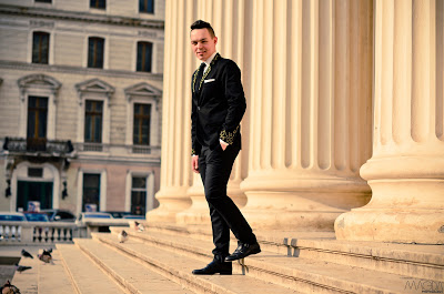 Dacă data trecută vă prezentam o ţinută relaxată/casual, azi vreau să vă arăt opusul ei: ţinuta de seară, elegantă şi demnă de un black-tie code. Deşi la primul impuls dress-code-ul black-tie e asociat cu un frac/smocking accesorizat musai cu un papion self-tied (în cel mai bun caz), eu încadrez în acest registru stilistic şi simplul costum negru, accesorizat pe măsură.