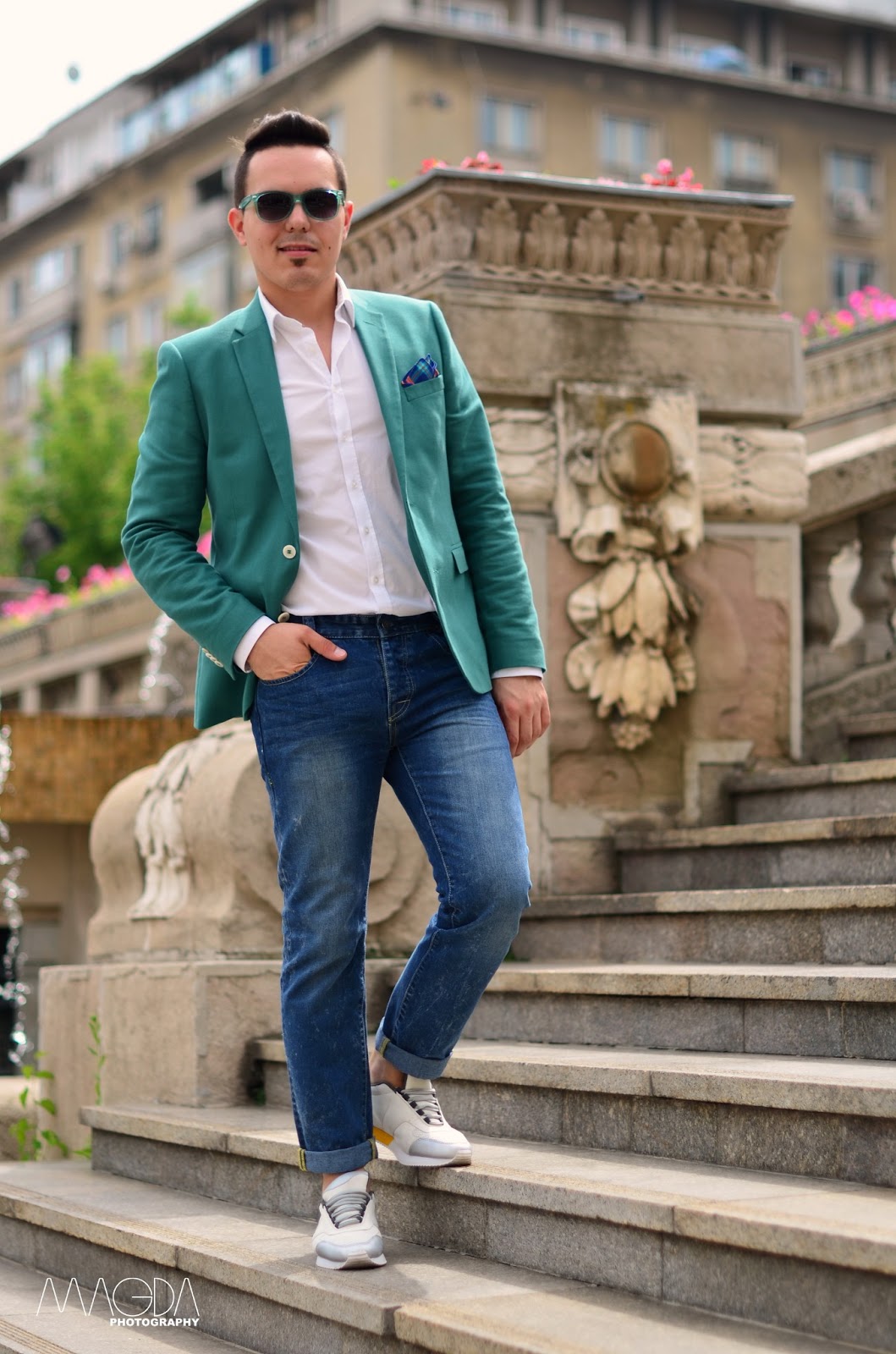 Am pornit de la foiţa de fâş impermeabilă (căci la ce vreme a fost în ultimele zile în Bucureşti, orice e posibil) pe care am asortat-o la un tricou basic din bumbac, o pereche de jeans stretch şi încălţări foarte comode.